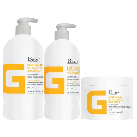 BAOR G TRIPACK SOFT GOLD Shampoo 500 ml + Acond 300 ml + Mascarilla 300 ml
