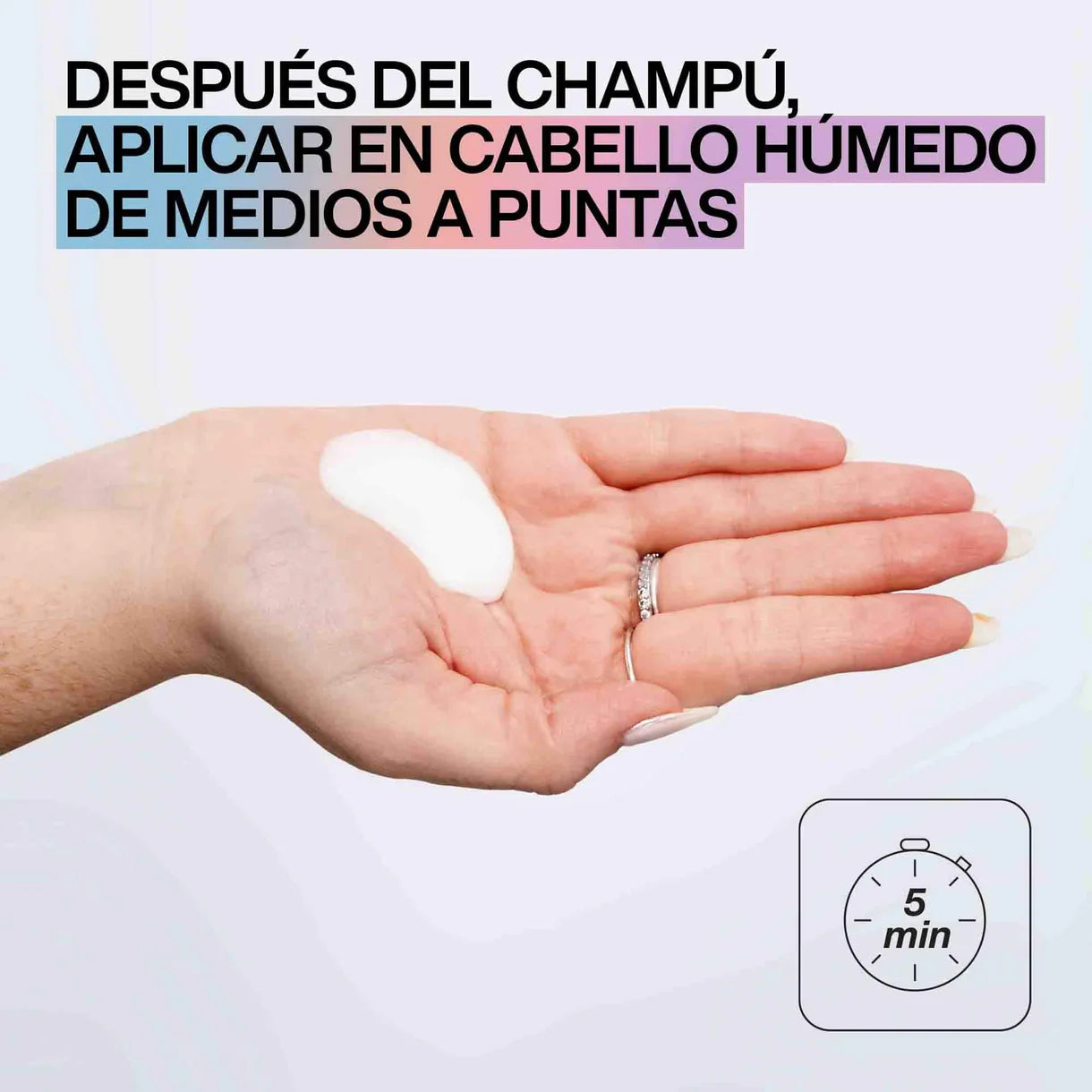 Aplicar en el cabello húmedo y limpio, de medios a puntas. Dejar actuar durante 5 minutos y enjuagar.